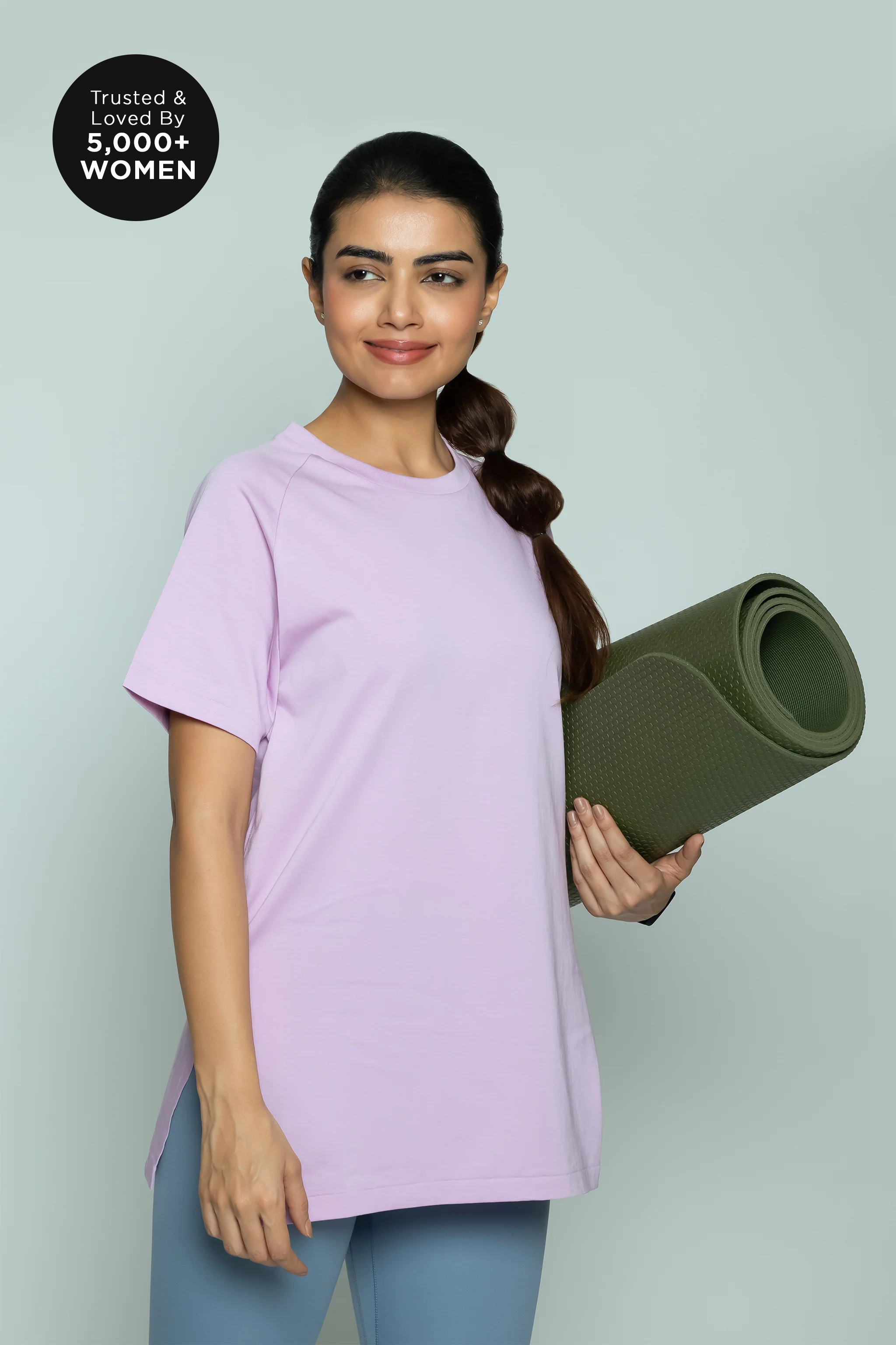 Lavender, 100% Organic Cotton, Relaxed Tunic Tee, Seamless Pocket